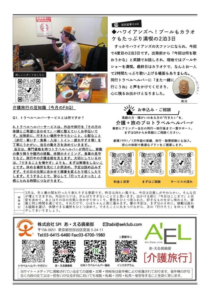 安心な喜びになるよう、私たちトラベルヘルパーが精⼀杯お⼿伝いします。